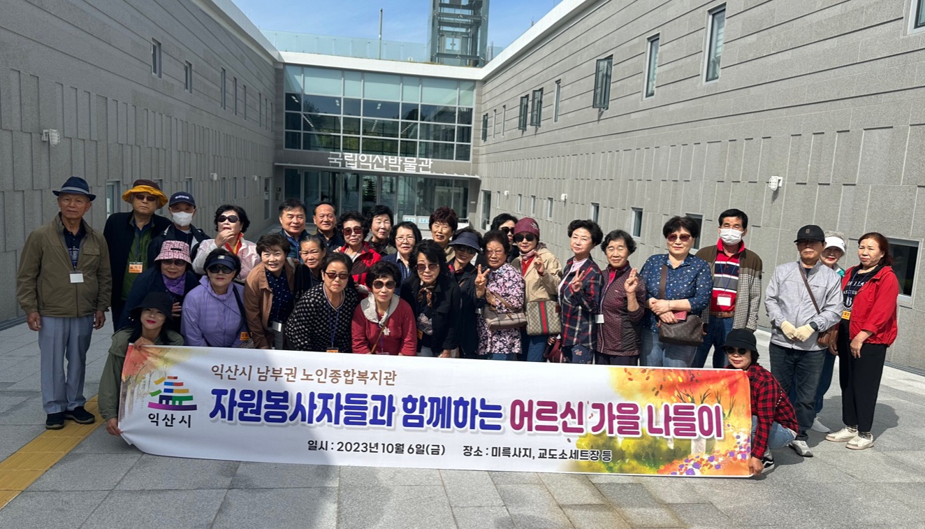 지난 6일 남부권노인종합복지관은 자원봉사자들과 어르신 30여명이, 익산 시티투어버스와 연계하여 미륵사지와 교도소 세트장 등 우리 지역 관광 명소를 둘러보는 특별한 하루를 보냈다.