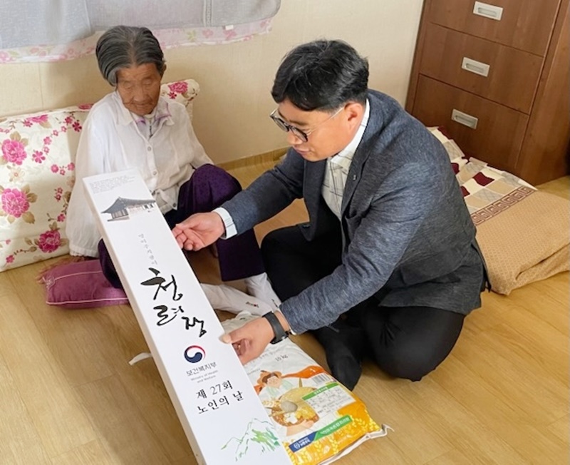 [정읍=뉴전북] 정읍시 덕천면사무소는 제27회 노인의 날(10월 2일)을 기념해 지난 6일 지역 내 100세 어르신 두 명에게 청려장(장수지팡이)과 대통령 축하 카드를 전달했다.