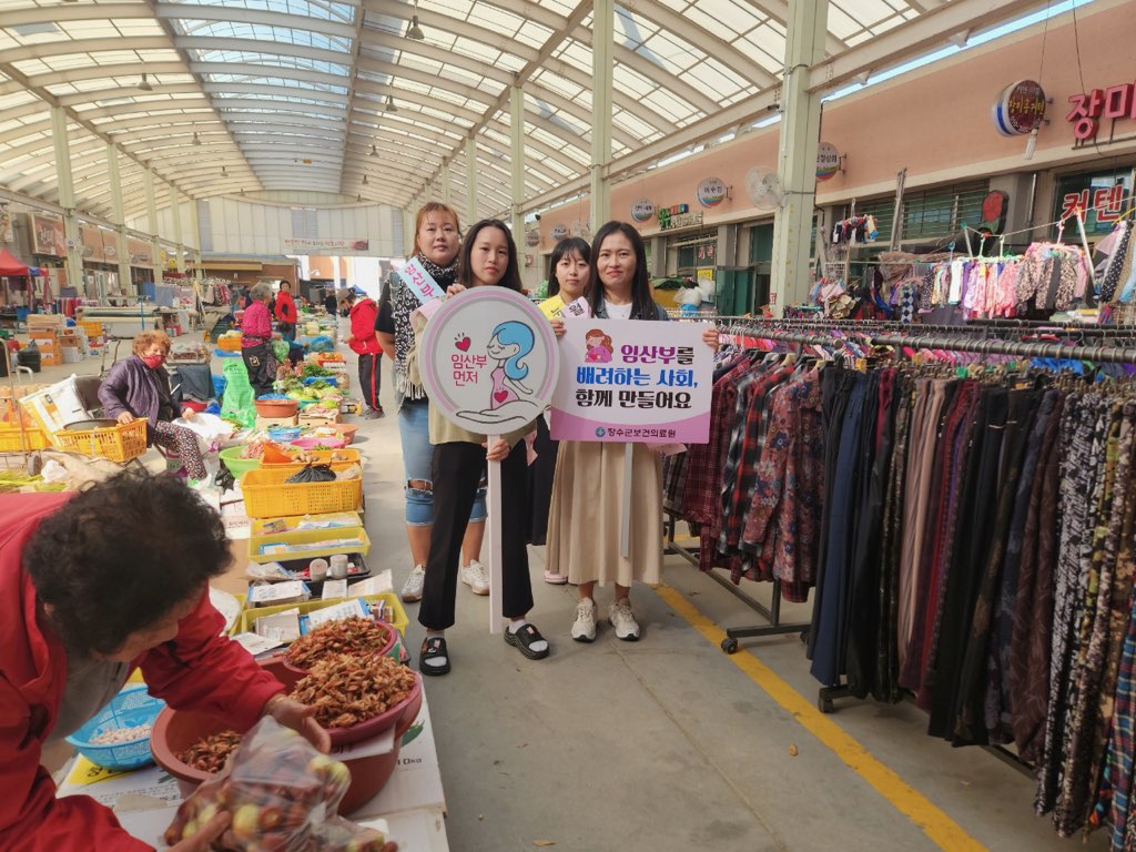 [장수=뉴전북]장수군보건의료원은 10일 임산부의 날(10월 10일)을 맞아 장수시장에서 ‘임산부 배려 및 모유수유 홍보 캠페인’을 펼쳤다.