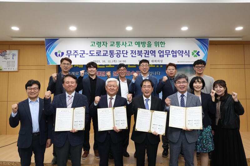 고령 운전자 맞춤형 교통안전 사업 추진 기반을 만들어 고령자 교통사고 예방과 감소를 주도한다는 취지에서 진행된 이날 협약에는 황인홍 무주군수와 도로교통공단 전북운전면허시험장 이주동 단장, 도로교통공단 전북지부 기용걸 본부장, 도로교통공단 한국교통방송 전북본부 박경민 사장을 비롯한 각 기관 관계자 10여 명이 참석했다.