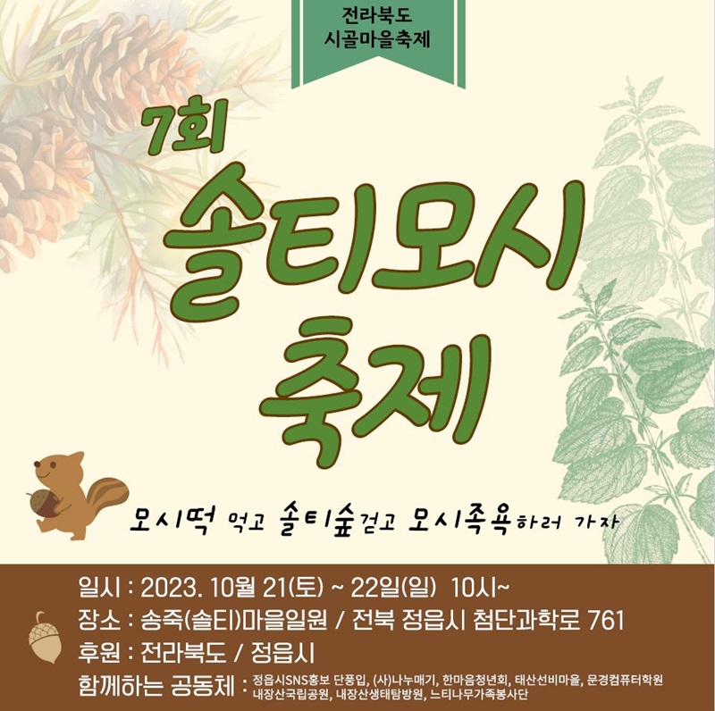 [정읍=뉴전북] 사라져가는 전통문화를 보존하고 마을 공동체를 회복하기 위한 제7회 솔티모시 축제가 10월 21일부터 22일까지 정읍시 솔티(송죽)마을 일원에서 개최된다.