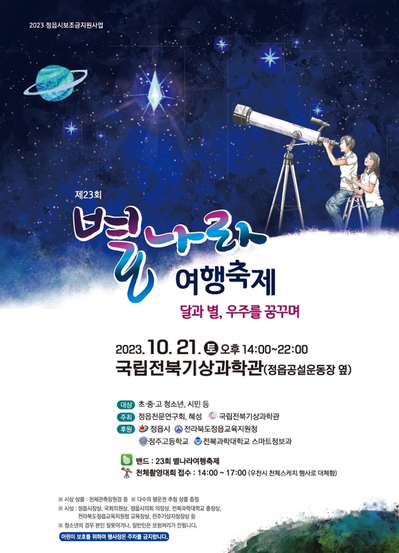 [정읍=뉴전북] 제23회 별나라여행축제가 오는 21일 국립전북기상과학관에서 개최된다.