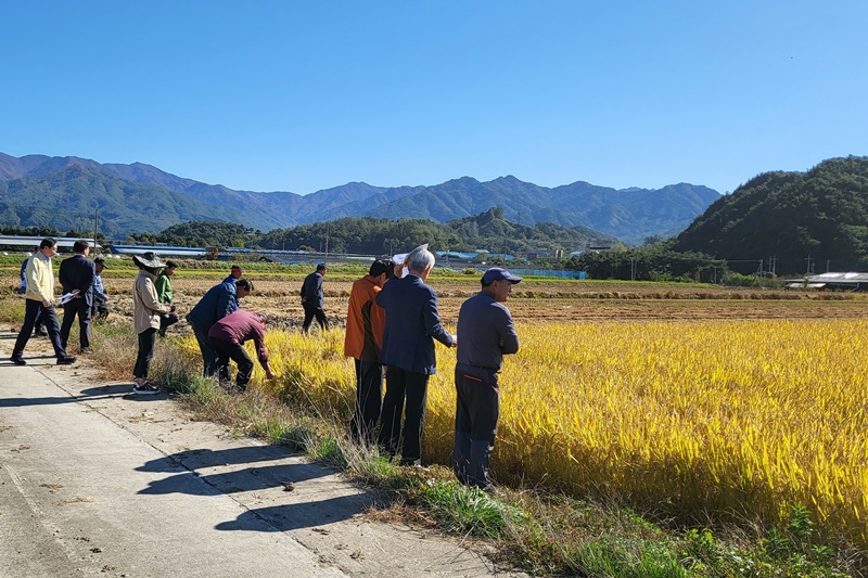 [무주=뉴전북] 무주군은 지난 17일 안성면 참동진 자율교환 채종포에서 무주군농업기술센터 및 농협 관계자, 그리고 관심 농가 등이 참석한 가운데 ‘참동진 벼 평가회’를 가졌다고 밝혔다.