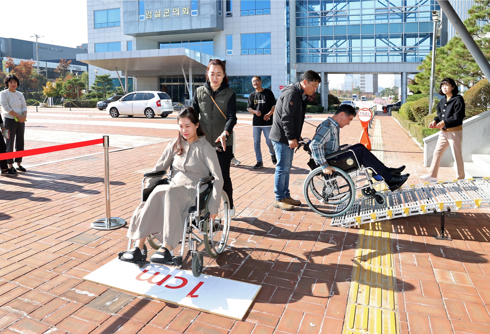 [임실=뉴전북] 전북 임실군(군수 심민)과 전북지체장애인연합회 임실지회(지회장 김윤배)가 지난 24일 임실군청에서 장애인 편의시설 인식개선을 위한 체험 및 홍보 행사를 개최했다.