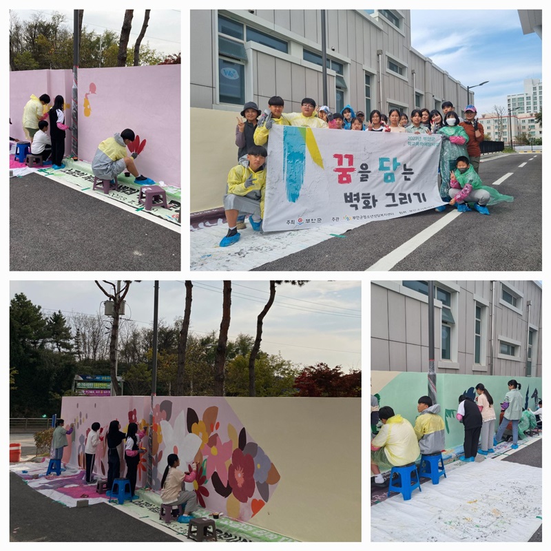 [부안=뉴전북] 부안군 교육청소년과 (청소년상담복지센터)은 학교폭력예방사업 일환으로 청소년 힐링 체험 꿈·담(꿈을 담은 벽화)그리기를 10월21일~10월29일 부안 서림고여자고등학교, 부안고등학교 , 자원봉사 참여청소년과 부안가족센터 청소년 (총30명) 함께 실시하였다.