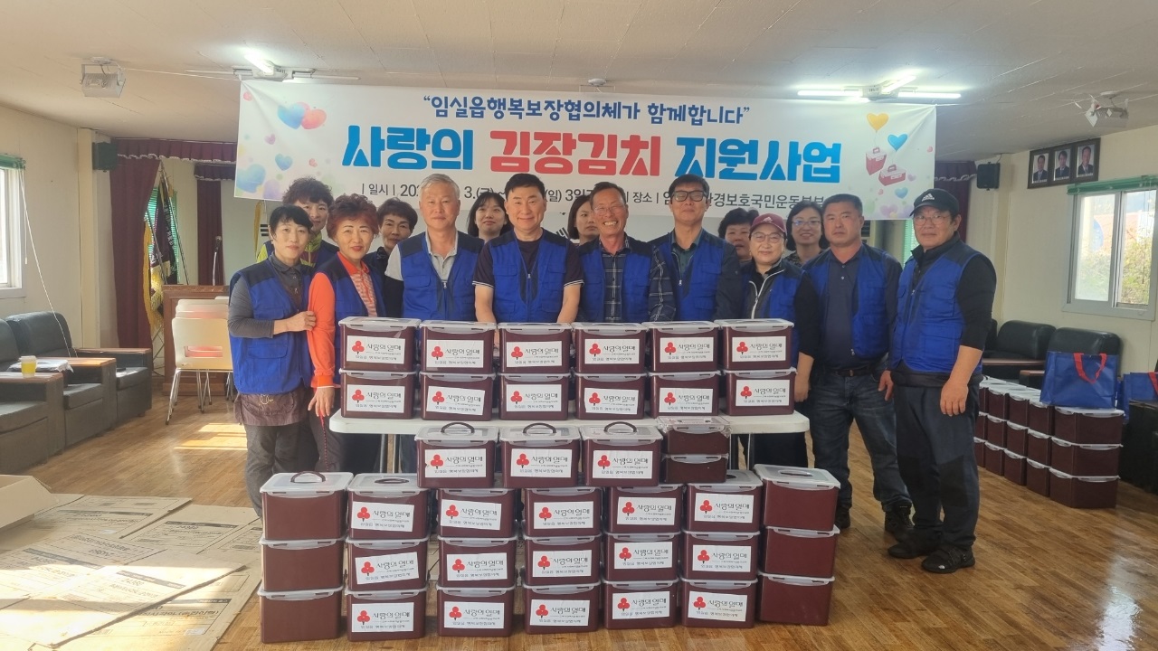 [임실=뉴전북] 전북 임실읍 행복보장협의체(공동위원장 홍성만, 박만식)가 협의체 위원 20여 명과 임실군환경보호국민운동본부 봉사자들이 참여한 가운데 지난 3일부터 5일까지‘사랑의 김장 김치 지원사업’ 봉사활동을 진행했다.