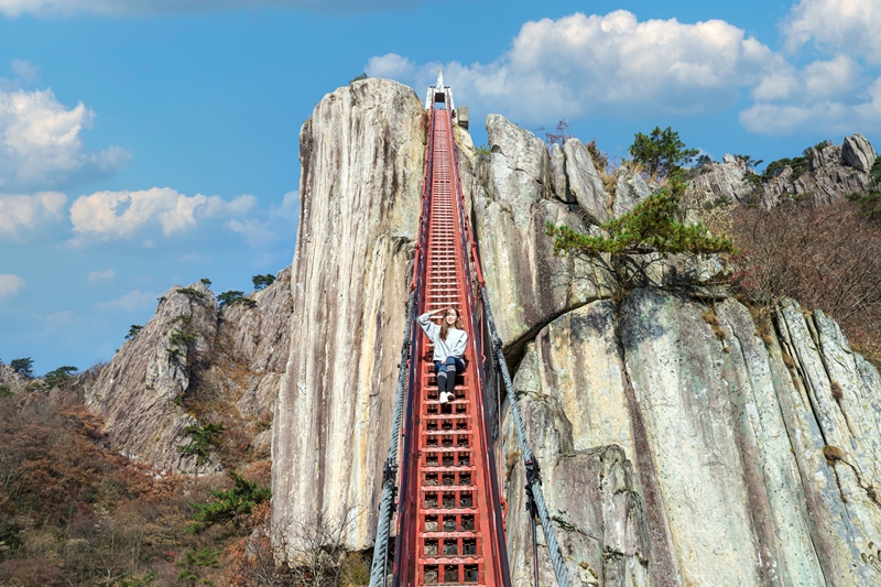 이들이 대둔산 삼선철계단을 배경으로 찍는 사진이 SNS에서 화제를 모으며, 크게 주목받았다.