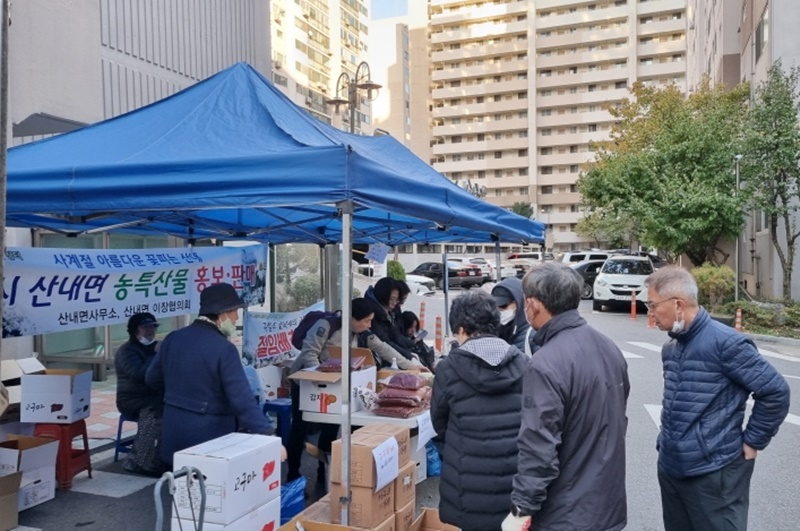 행사에는 산내면에서 생산한 질 좋은 농특산물을 저렴한 가격에 판매해 청국장, 들깨, 참기름, 들기름, 토란 등 대부분의 상품이 조기 완판됐다.