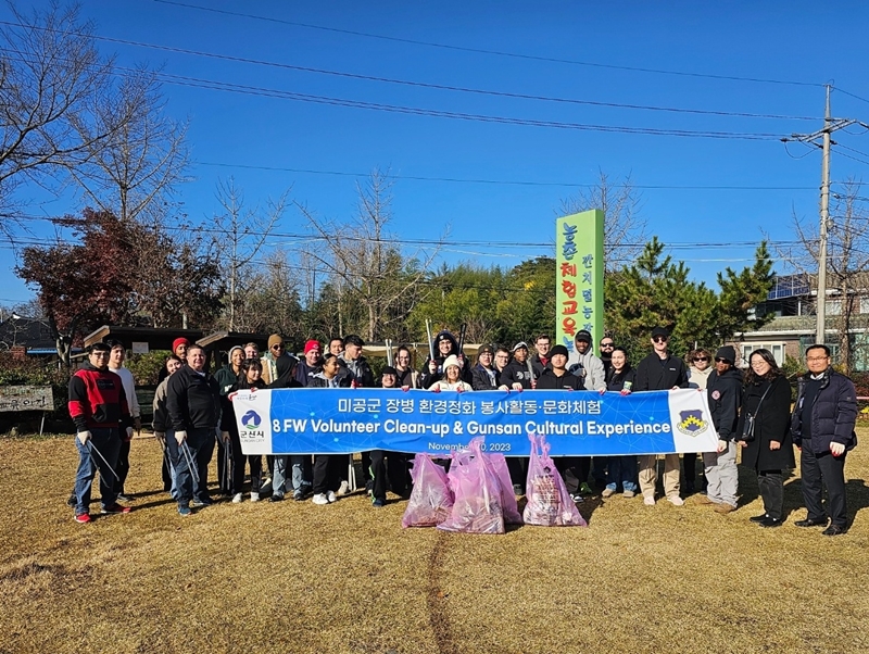 [군산=뉴전북] 군산시는 20일 미공군 제8전투비행단 장병 30여 명을 초청해 성산면 깐치멀 농촌체험마을에서 환경정화활동과 문화체험활동을 실시했다고 밝혔다.