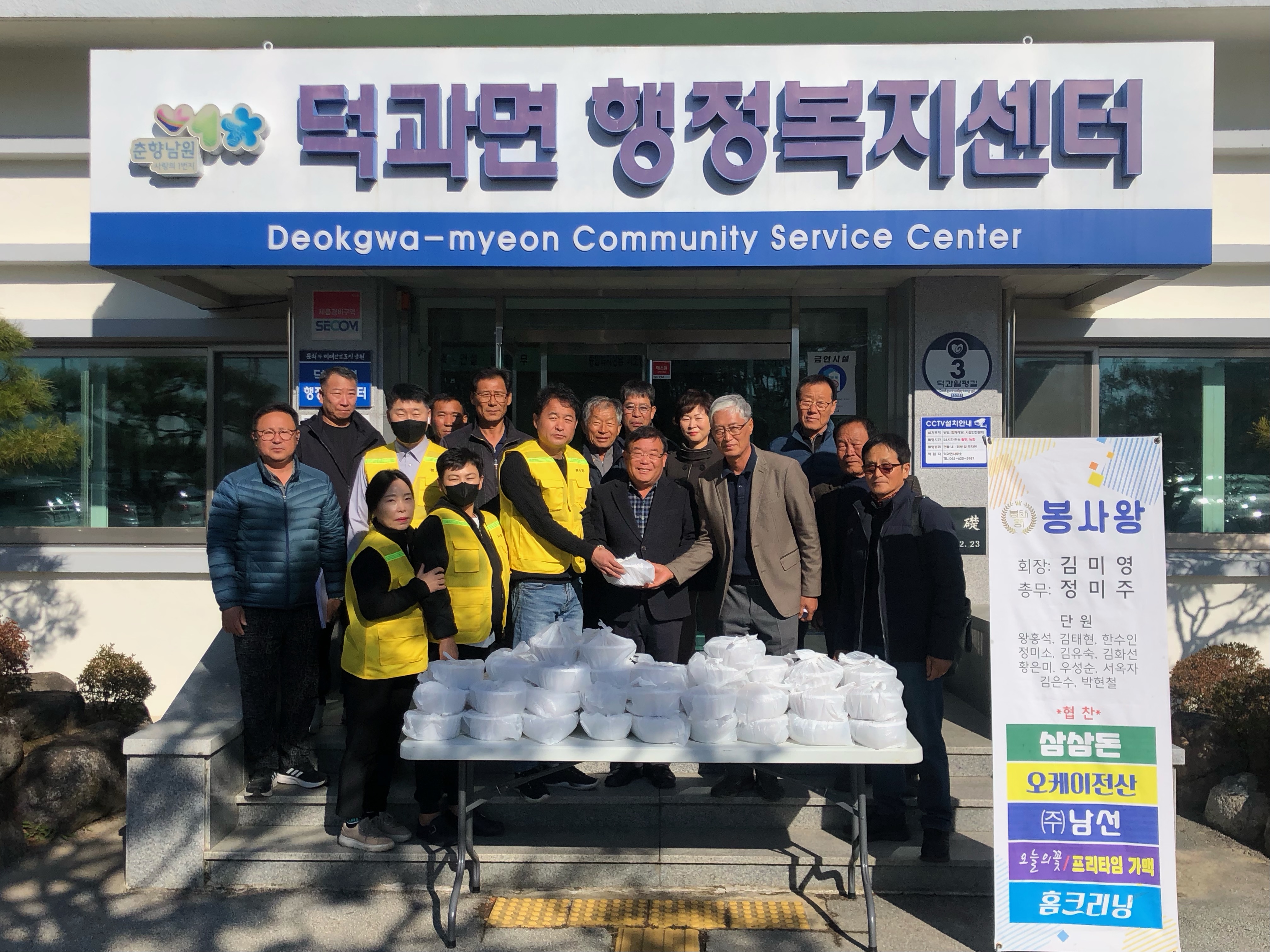 서지호 덕과면장은 “이번 나눔 행사를 준비한 봉사왕 단체 회원들과 왕홍석 대표에게 무척 감사드리며”, “기부해주신 물품은 도움이 필요한 가정에 소중히 전달하겠다”고 말했다.