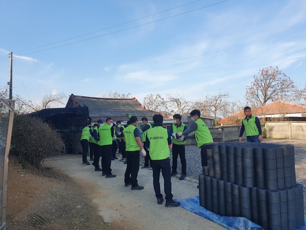 [군산=뉴전북] 군산시는 음식물류 폐기물 수집‧운반 업체 ㈜금호로지스(대표 이지태) 임직원들이 회현면의 어려운 이웃들을 위해 22일 사랑의 연탄나눔을 실시했다고 밝혔다.