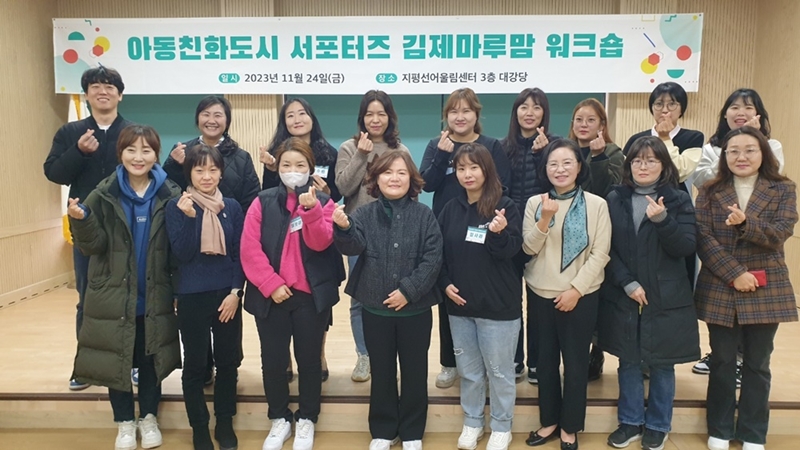 [김제=뉴전북] 김제시(시장 정성주)는 24일, 지평선 어울림센터에서 아동친화도시 서포터즈단 ‘김제마루맘’ 회원 30여 명이 참가한 가운데 아동친화도시 조성사업 과제발굴 워크숍을 개최해 참가자들로부터 큰 호응을 얻었다.