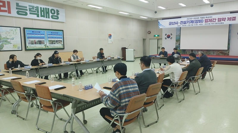 [군산=뉴전북] 군산시는 지난 23일 올겨울 폭설시 신속한 제설작업을 위해 지역 건설기계(장비) 20여개 업체와 ‘군산시·건설기계(장비) 업체간 협약’을 체결했다고 밝혔다.