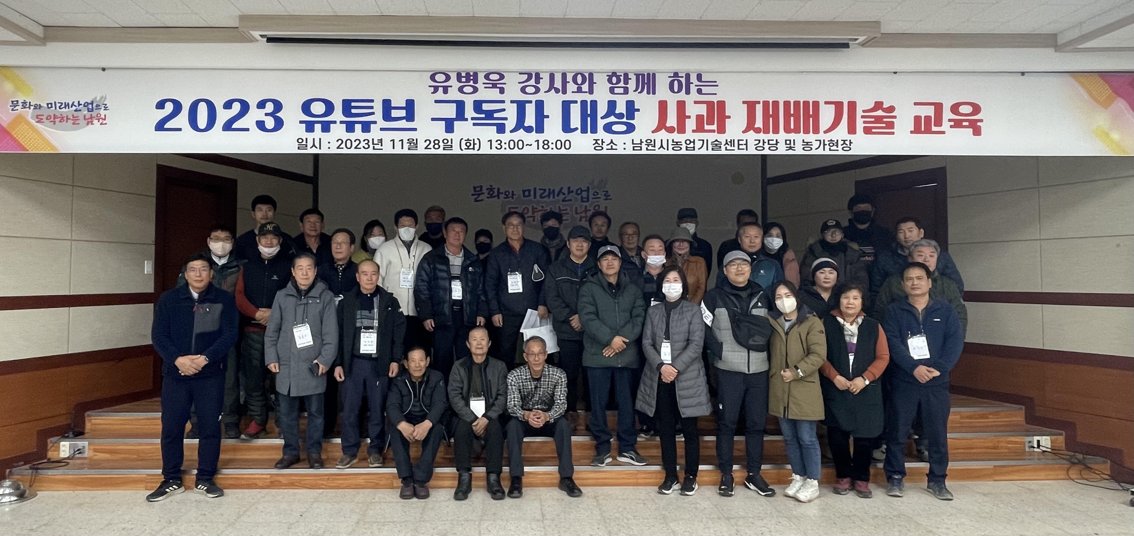 대상은 우리지역 남원의 사과를 재배하는 농가뿐만 아니라 전국 사과 재배농업인 중 남원시농업기술센터 유튜브 채널을 통해 교육 영상을 시청하고 계시는 구독자를 대상으로 사전에 신청하신 분을 대상으로 특강을 진행하였다.