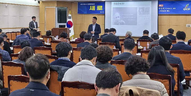 [도정=뉴전북] 전북도는 지난 30일 ‘제12차 새로운 전북 포럼’을 개최, 임상규 행정부지사가 이른 아침 7시 30분부터 8시 50분까지 도청 중회의실에서 도의원, 실·국장과 관련 출연기관장 및 직원 70여 명과 함께 ‘리더십과 태도’라는 주제로 강의와 열띤 토론을 진행하는 시간을 가졌다.