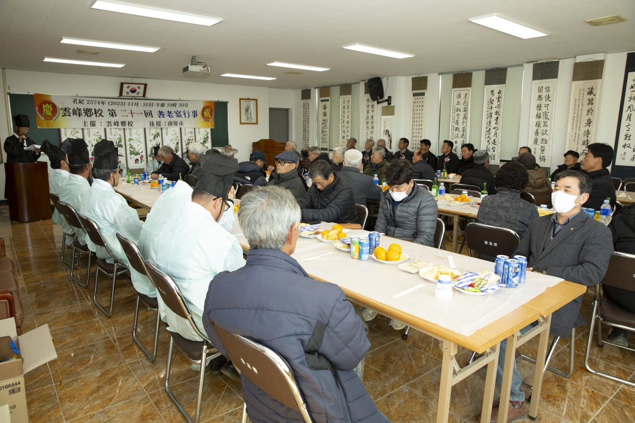 [남원=뉴전북] 전북 남원시 운봉향교(전교 서영복)는 지난달 30일 향교 충효관에서 관내 70세 이상 노인 100여 명을 초청해 2023년 기로연 행사를 개최하였다.