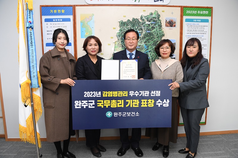 [완주=뉴전북] 완주군이 질병관리청에서 주관한 ‘2023년 감염병관리 유공자 포상’에서 국무총리 표창을 받았다.