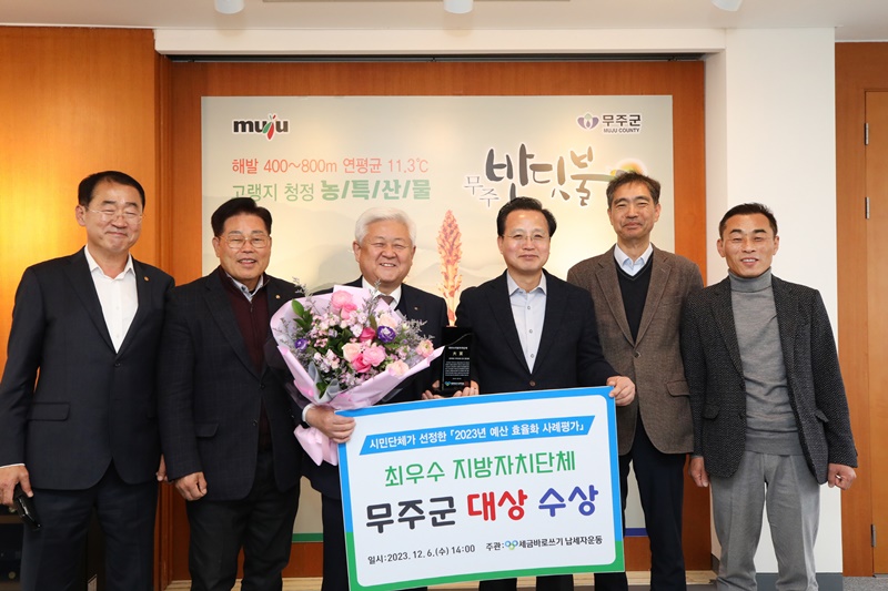 [무주=뉴전북] 무주군이 ‘세금바로쓰기 납세자운동(행정안전부 등록 전국 단위 시민단체)’으로부터 2023년 시민단체가 수여하는 최우수지방자치단체 “대상(大賞)”을 수상했다.