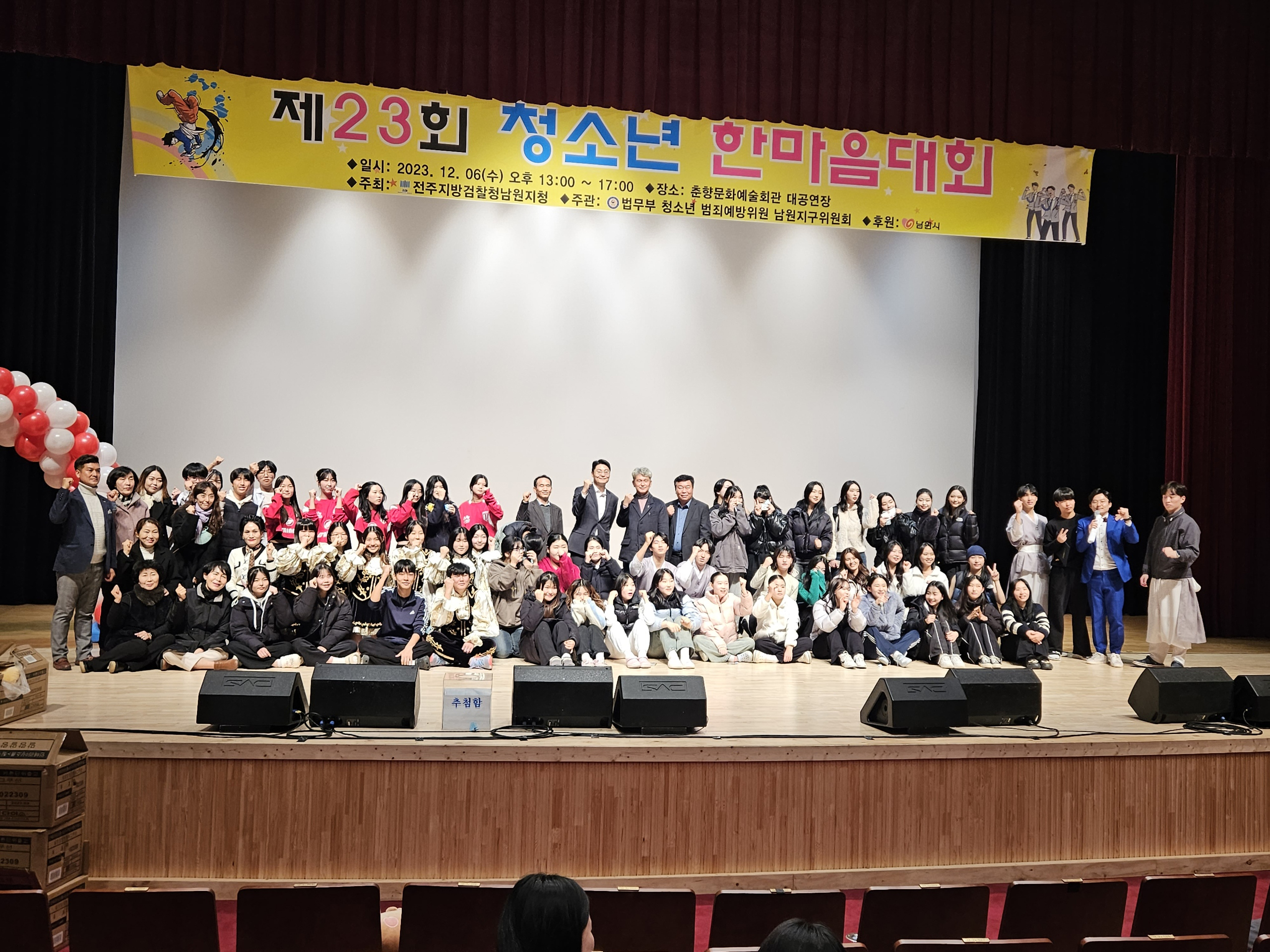 [남원=뉴전북] 지난 12월 6일, 법무부청소년범죄예방위원 남원지구위원회(회장 변재병)가 주최한 제22회 청소년 한마음대회가 춘향문화예술회관 대공연장에서 펼쳐졌다.