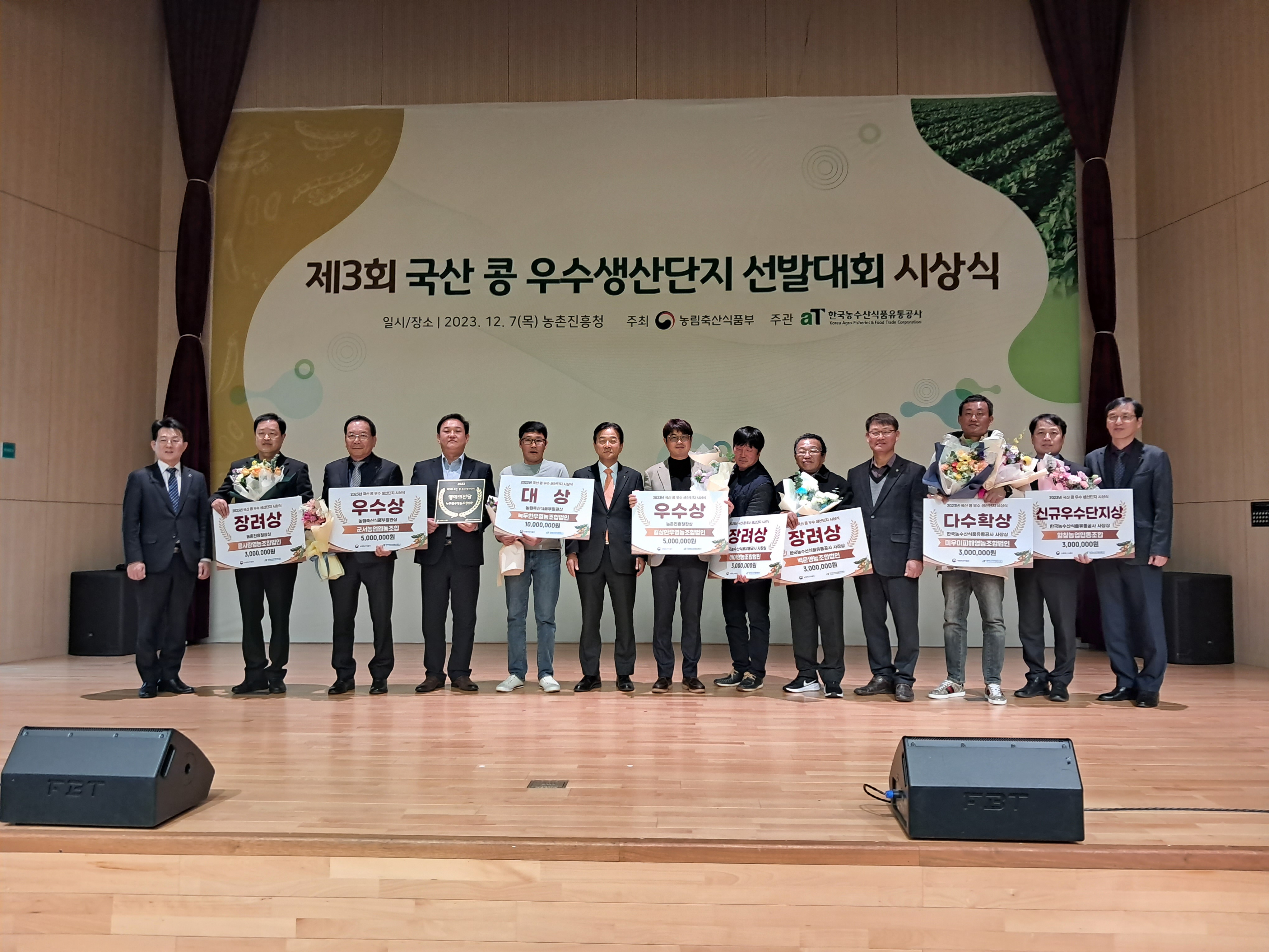 전북도는 이번 대회에서 우수 콩 생산단지에 대상(정읍 녹두한우영농법인)과 장려상(부안 하이영농법인), 다수확상(김제 미우미피해영농법인)에 선정되는 쾌거를 이뤘다.