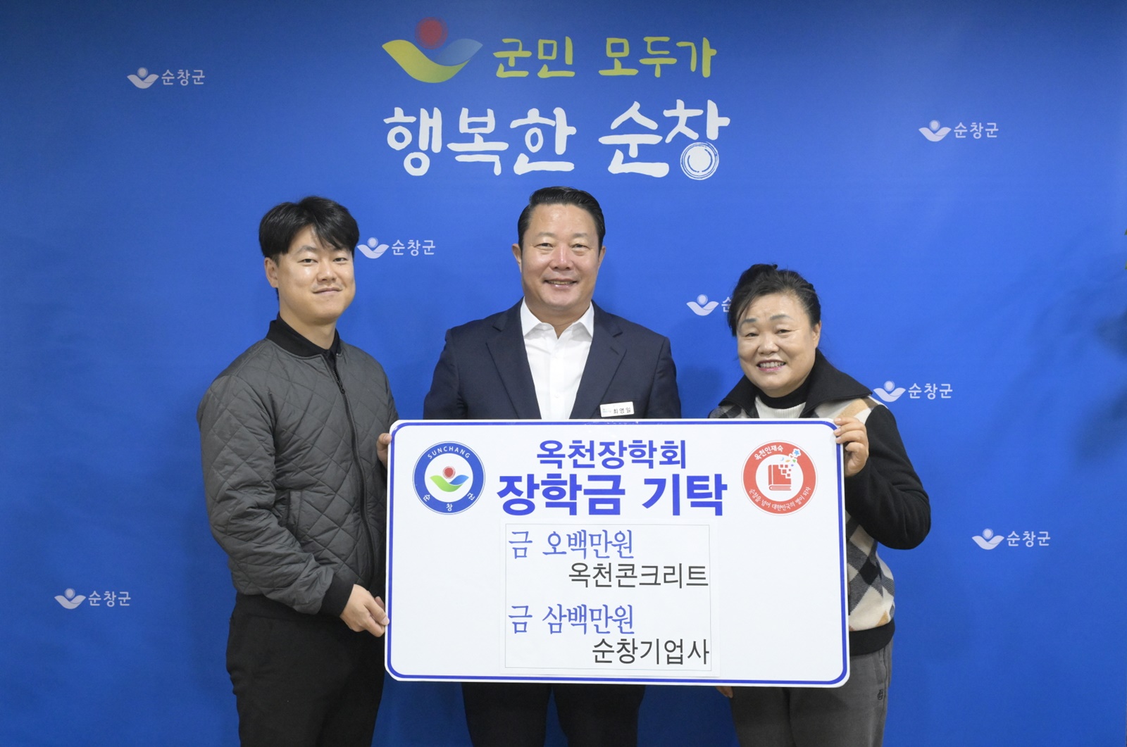 [순창=뉴전북] 전북 순창군은 11일 순창기업사(대표 봉성배)가 300만 원, 옥천콘크리트(대표 서명옥)가 500만 원을 순창군 옥천장학회에 기탁했다고 밝혔다.