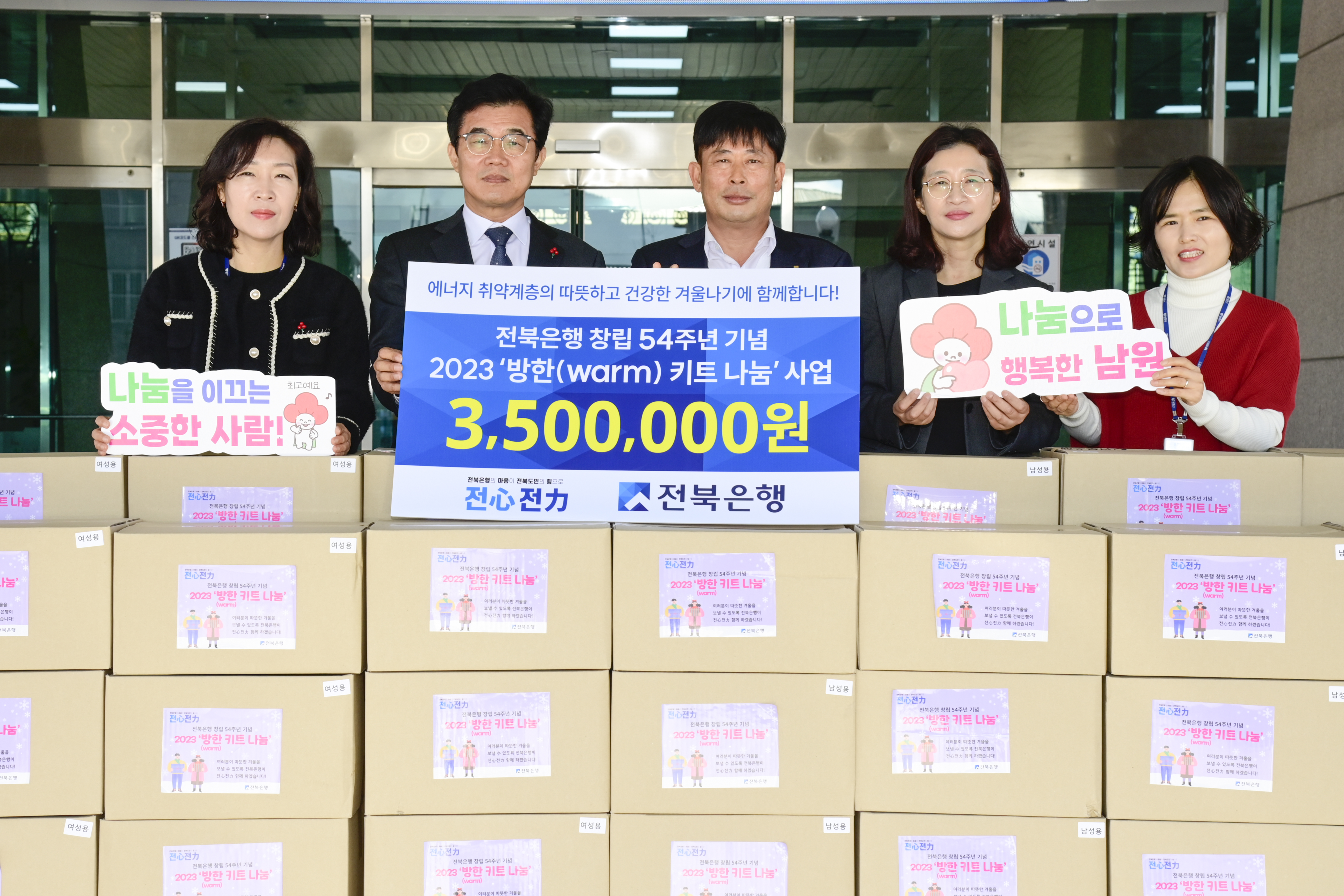 전북은행은 매년 동절기 겨울철 난방에 어려움을 겪고 있는 취약계층을 위해 방한용품을 기탁하고 있으며, 올해에도 방한용품 기부로 따뜻함을 더했다.