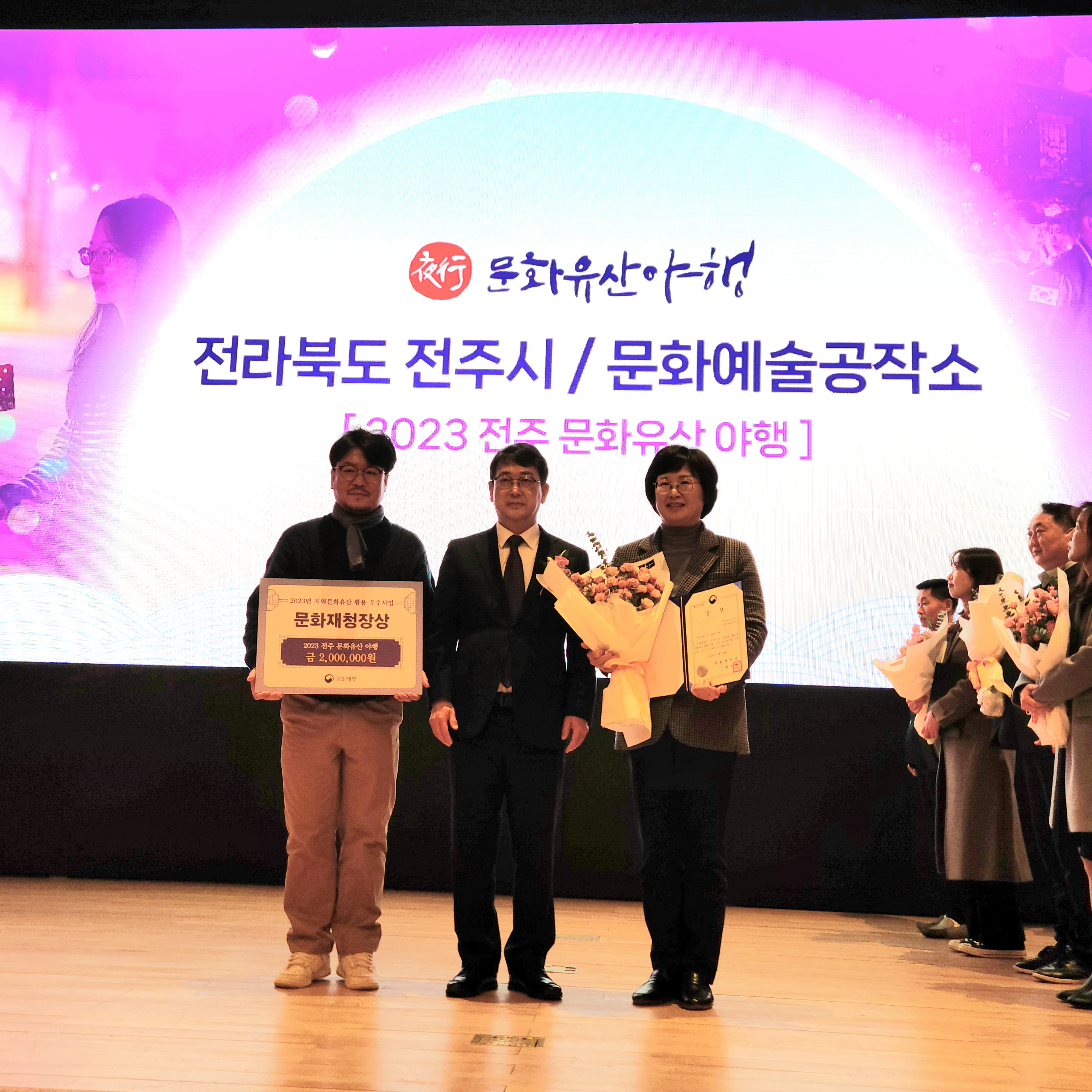 - - 2023 전주문화재야행, 문화재청으로부터 ‘문화유산 야행’ 부문 우수사업으로 선정 - ‘풍패지향 왕의 궁원을 거닐다’를 주제로 나흘간 16만여 명의 관광객 끌어 모아