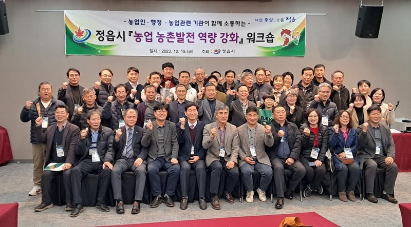 [정읍=뉴전북] 정읍시는 지난 15일부터 16일까지 전주 베스트웨스턴 호텔에서 농업인과 행정, 유관기관이 함께 소통하는 농업농촌발전 역량강화 워크숍을 개최했다.