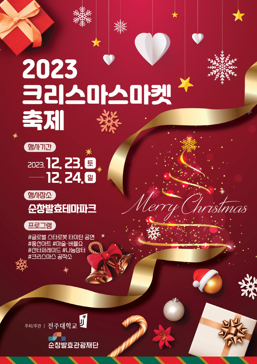 [순창=뉴전북] 전북 순창군(군수 최영일) 출연기관인 순창발효관광재단(대표 선윤숙)이 오는 23일부터 24일까지 이틀간 발효테마파크 일원에서‘2023년 크리스마스 마켓’ 행사를 진행한다.