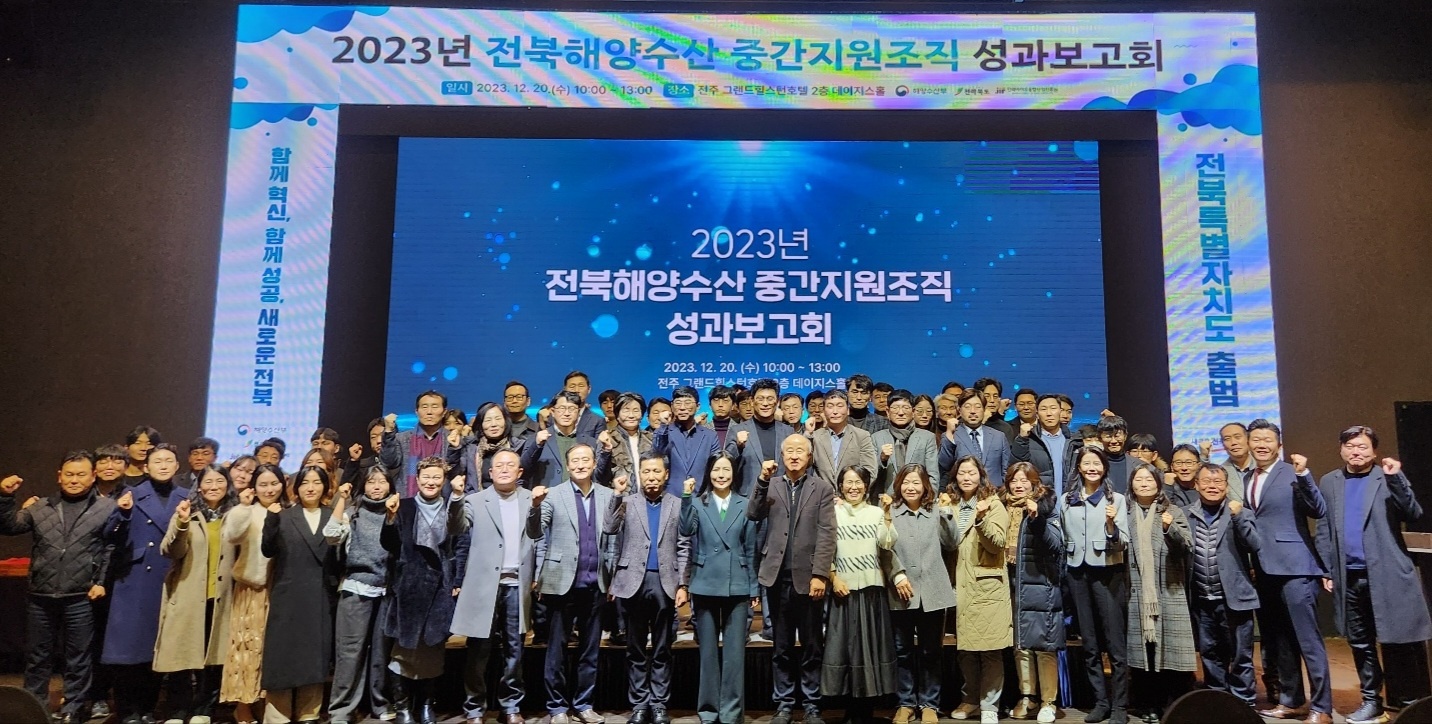 [도정=뉴전북] 전북도와 전북해양수산창업투자지원센터는 20일 전주 그랜드힐스턴에서 해양수산 중간 지원조직과 도내 수산기업 및 수산관계 공무원 등 150여명이 참석한 가운데 ‘전라북도 해양수산 중간 지원조직 성과보고회’를 개최했다.
