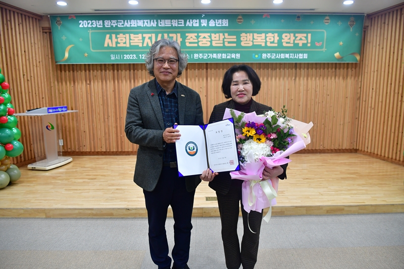 [완주=뉴전북] 완주군의회 이경애 부의장이 19일 완주가족문화교육원에서 사회복지사의 처우개선 및 권익증진에 기여한 공로로 감사패를 받았다.