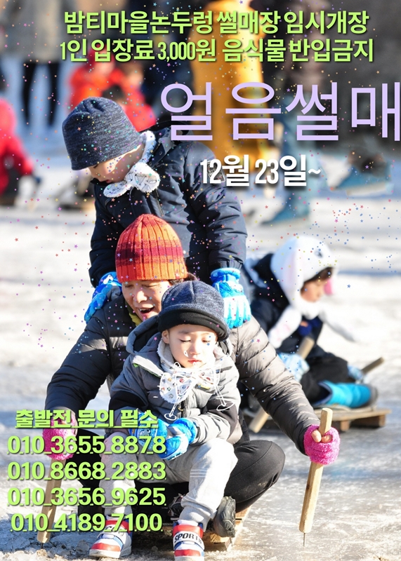 정종수 밤티마을 이장은 “코로나19로 인해 문을 열지 못했던 썰매장을 다시 개장할 수 있어 기쁘다”며 “마을 주민들이 힘을 합쳐 만든 썰매장에 많은 사람들이 찾아와 온 가족이 즐길 수 있는 안전한 썰매장이 되도록 노력하겠다”고 말했다.