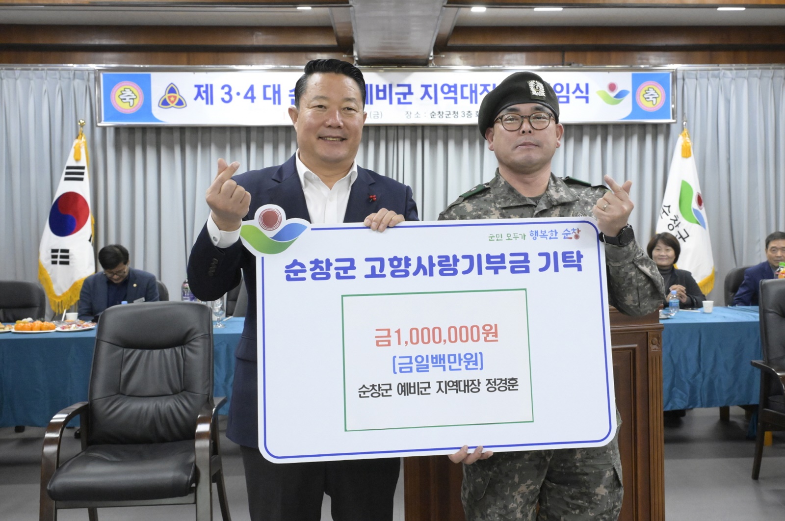 또한 이날 정경훈 지역대장은 고향인 순창을 위해 고향사랑기부금 100만 원을 순창군에 기부하면서 고향사랑의 마음을 실천해 취임식을 더욱 훈훈하게 했다.