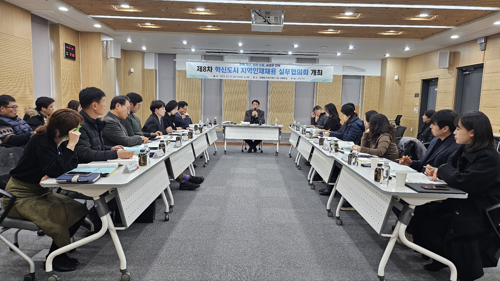 [도정=뉴전북] 전북도는 27일 전북혁신도시에 소재한 전북테크비즈센터에서 국민연금공단을 포함한 6개 혁신도시 이전공공기관과 도내 대학 관계자가 참석한 가운데 ‘제8차 혁신도시 지역인재채용 실무협의회’를 개최했다.