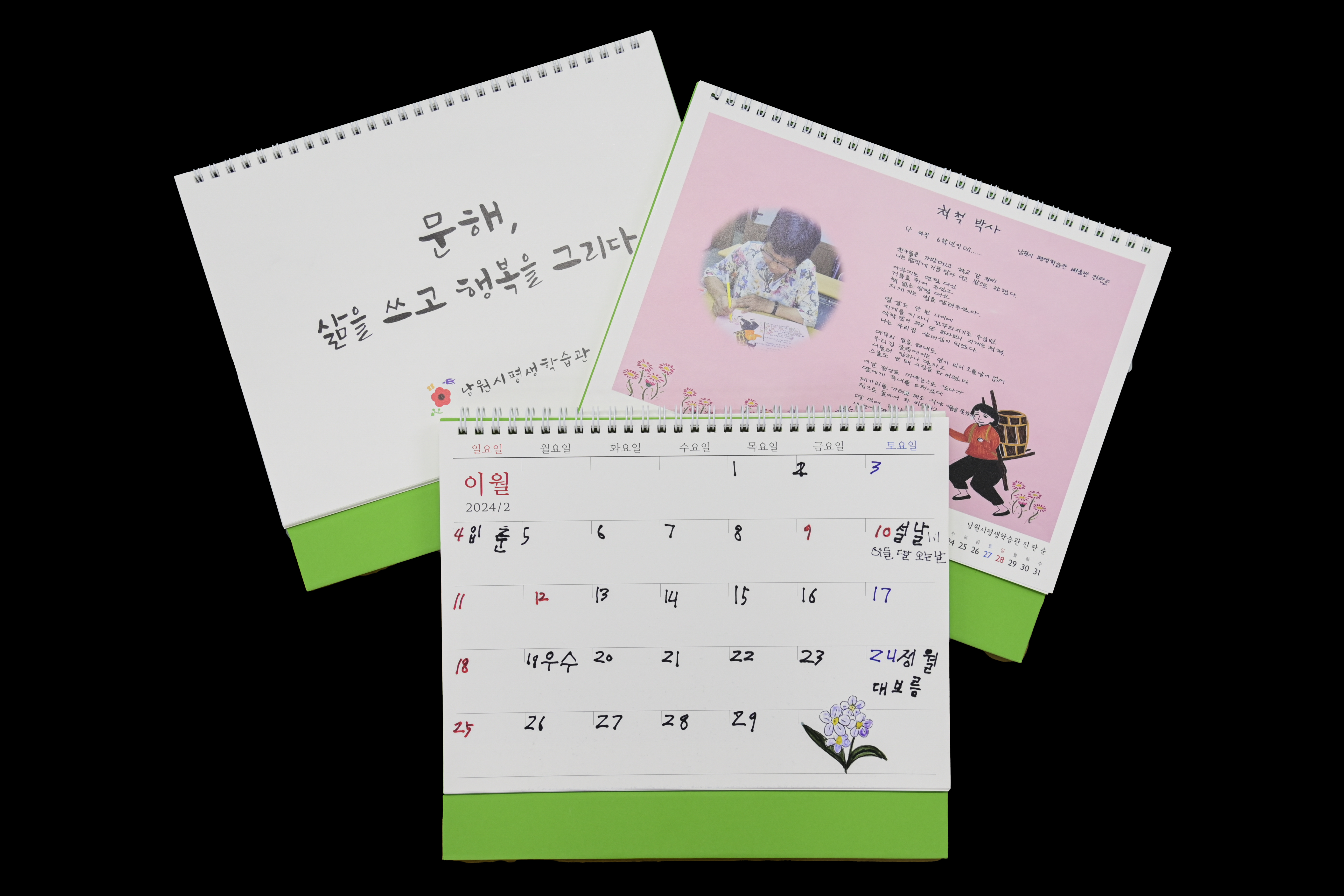 [남원=뉴전북] 평생학습도시 남원시(시장 최경식)가 올 한 해 남원시평생학습관 성인문해 수강생들의 작품과 글을 담아 2024년 탁상용 달력을 만들어 배부한다.