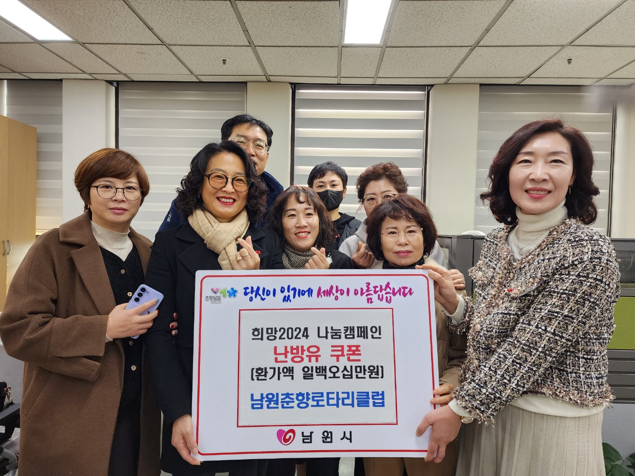 [남원=뉴전북] 지난 28일 남원춘향로타리클럽은 남원시청을 방문해 난방유 쿠폰(150만원)을 남원시사회복지협의회를 통해 취약계층에게 전달하겠다고 밝혔다.