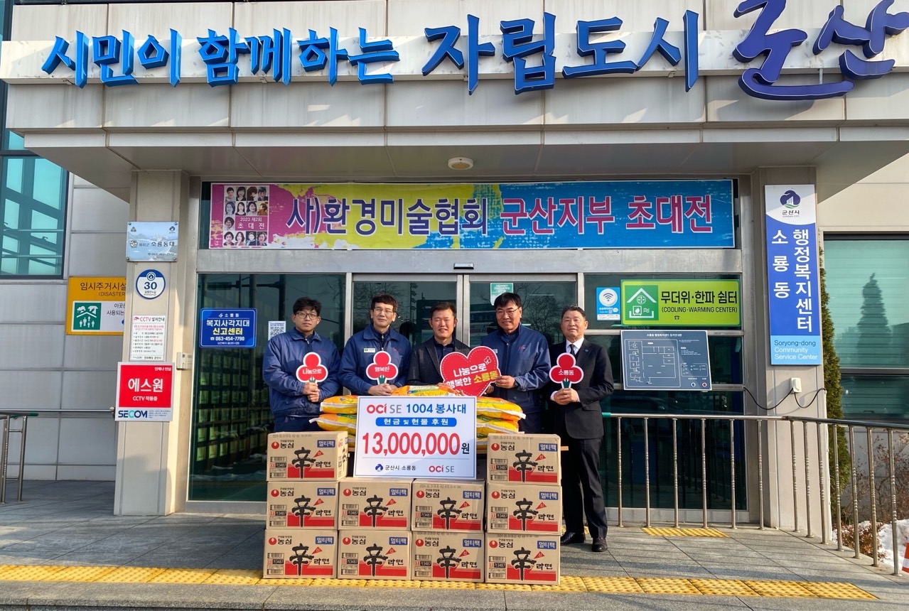OCI SE㈜ 한철 사장은 "연말연시를 맞이하여 소룡동 관내 어려운 이웃분들에게 조금이나마 힘이 될 수 있도록 성금과 물품 기탁을 했다”며 "앞으로도 지역사회와 항상 상생하며 공헌할 수 있는 기업이 되도록 노력하겠다”라고 말했다.