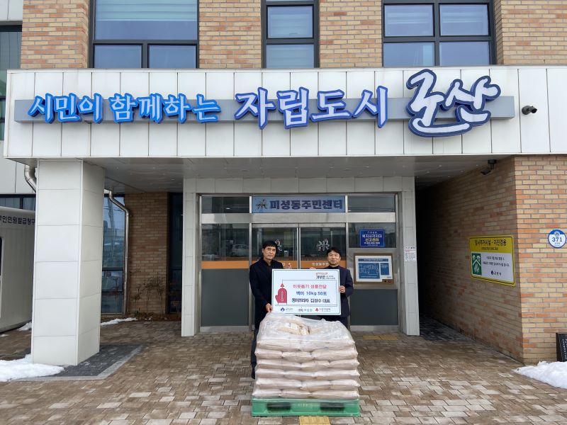 [군산=뉴전북] 군산시 미성동 행정복지센터는 지난해 12월 28일 산북동 동아프라자 상가번영회에서 겨울나기에 어려운 이웃들에게 전달해 달라며 햅쌀 10kg, 50포를 기부했다고 밝혔다.