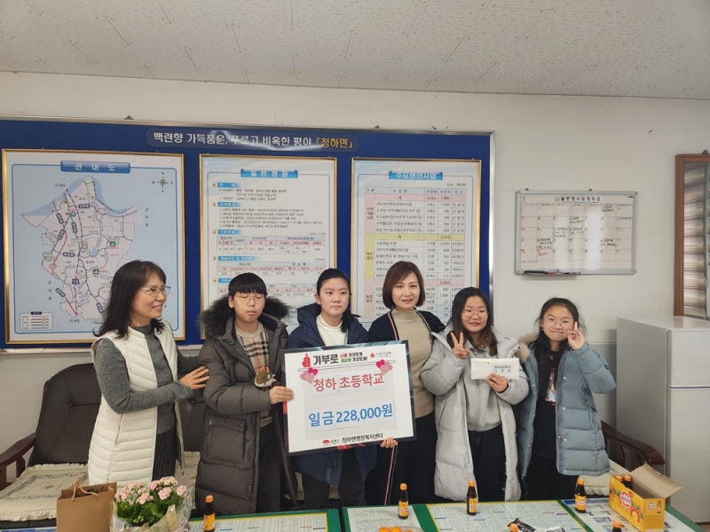 양유미 청하면장은 “나눔의 가치를 배우는 소중한 경험이 되길 바라고, 뜻깊은 기부를 실천해준 청하초등학교 학생들에게 고마운 마음을 전한다”며 “학생들의 따뜻한 손길이 담긴 성금은 도움이 필요한 이웃들에게 잘 전달하겠다”고 밝혔다.