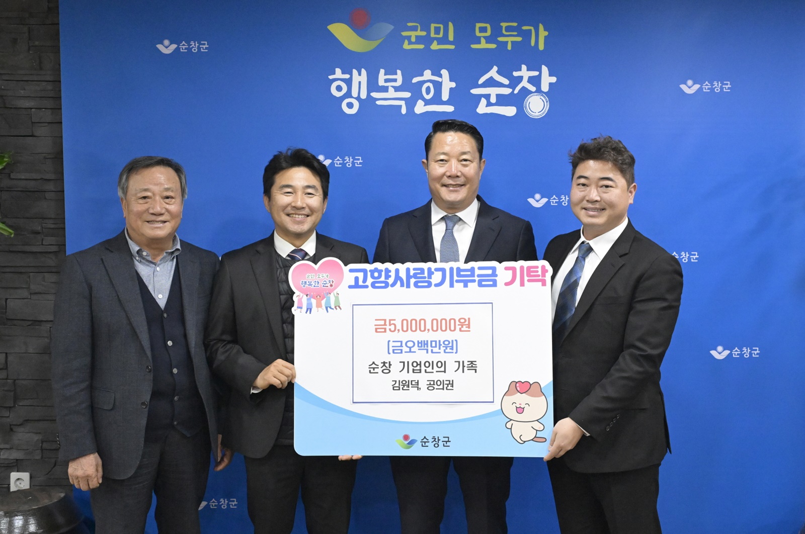 김원덕 씨는 “순창군 발전에 조금이나마 힘을 보태고 싶다”며 “앞으로도 순창군을 제2의 고향으로 생각하고 고향 발전을 위한 일에 기꺼이 동참하겠다”라고 말했다. 공의권 씨도 “멀리서나마 순창군 발전을 항상 응원하겠다”라고 소감을 전했다.
