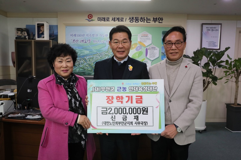 권익현 부안군 근농인재육성재단 이사장은“소중한 장학금을 기부해 주셔서 매우 감사드린다”고 전하며 “대학생 전학년 1,2학기 반값등록금 사업으로 부안형 교육을 실천하여 지역인재 양성에 최선을 다해 나가겠다”며 거듭 감사의 뜻을 전했다.