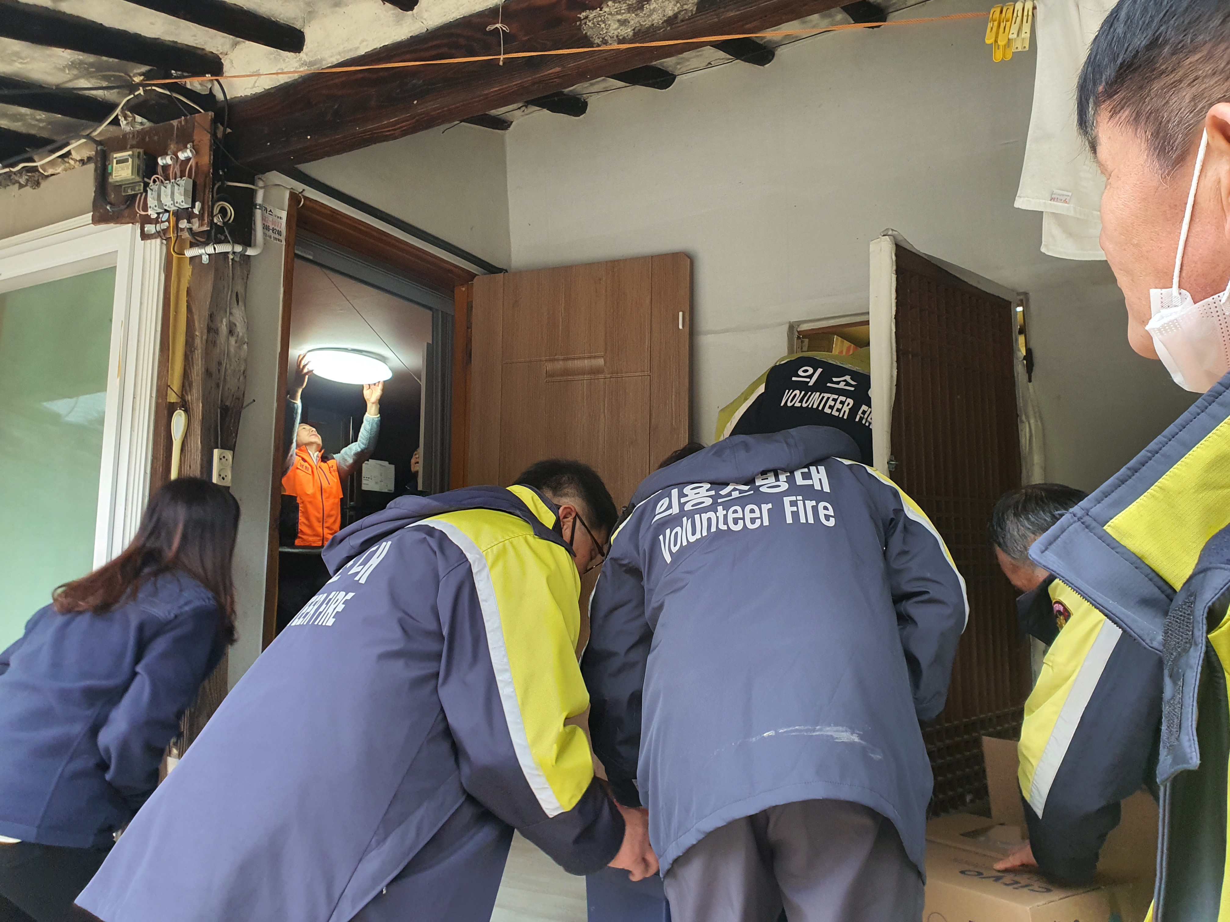 주천면 각 마을을 찾아가 여성 의용소방대에서는 염색을, 남성 의용소방대에서는 취약계층에게 고효율 엘이디(LED 등 교체, 노후 전기선 정리, 고장난 문 경첩 수리 등으로 생활 속 불편 사항을 해결해드렸다.