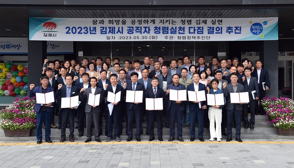 시는 지난해 3월 시민에게 신뢰받는 청렴 김제 실현을 위해 ‘2023년 종합 청렴도 향상’ 추진계획을 수립했다. 추진계획에는 ‘꿈과 희망을 공정하게 지키는 청렴 김제!’를 비젼으로 ‘한마음 한뜻으로, 청렴 1등급을 향한 힘찬 도약’이라는 목표를 잘 드러냈다는 평가를 받고 있다.