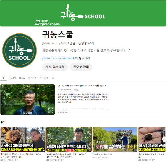 전북특별자치도 농촌활력과와 전북특별자치도농어촌종합지원센터는 23년 하반기부터 “귀농스쿨” 유튜브 채널을 통해 귀농귀촌 성공정착사례, 작물재배기술 등 다양한 콘텐츠를 제공하여 전북으로 귀농귀촌을 희망하는 도시민 대상으로 정보제공을 하고 있다.
