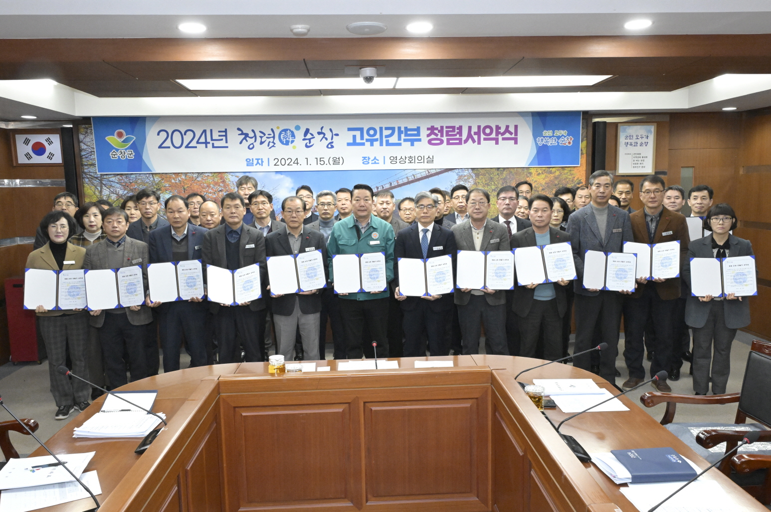 [순창=뉴전북] 전북 순창군이 15일 군청 영상회의실에서 최영일 군수를 비롯해 5급 이상 간부 공무원 39명이 참석해 청렴 서약 및 결의를 다졌다.