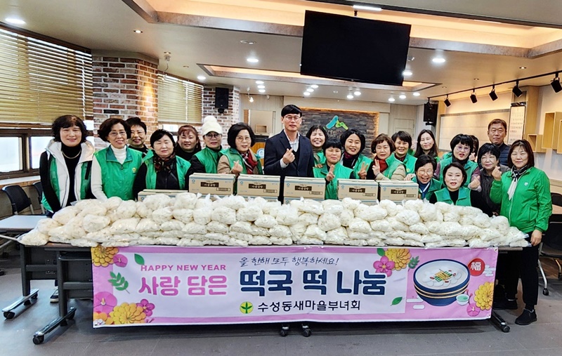 이날 행사에는 수성동 부녀회원 30여명이 참여해 떡국 떡과 사골국수 등이 담긴 꾸러미를 만들어 취약계층과 독거노인들에게 직접 전달했다. 또 독거노인들의 건강상태를 확인하고 안부를 물으며, 따뜻한 온기를 전했다.