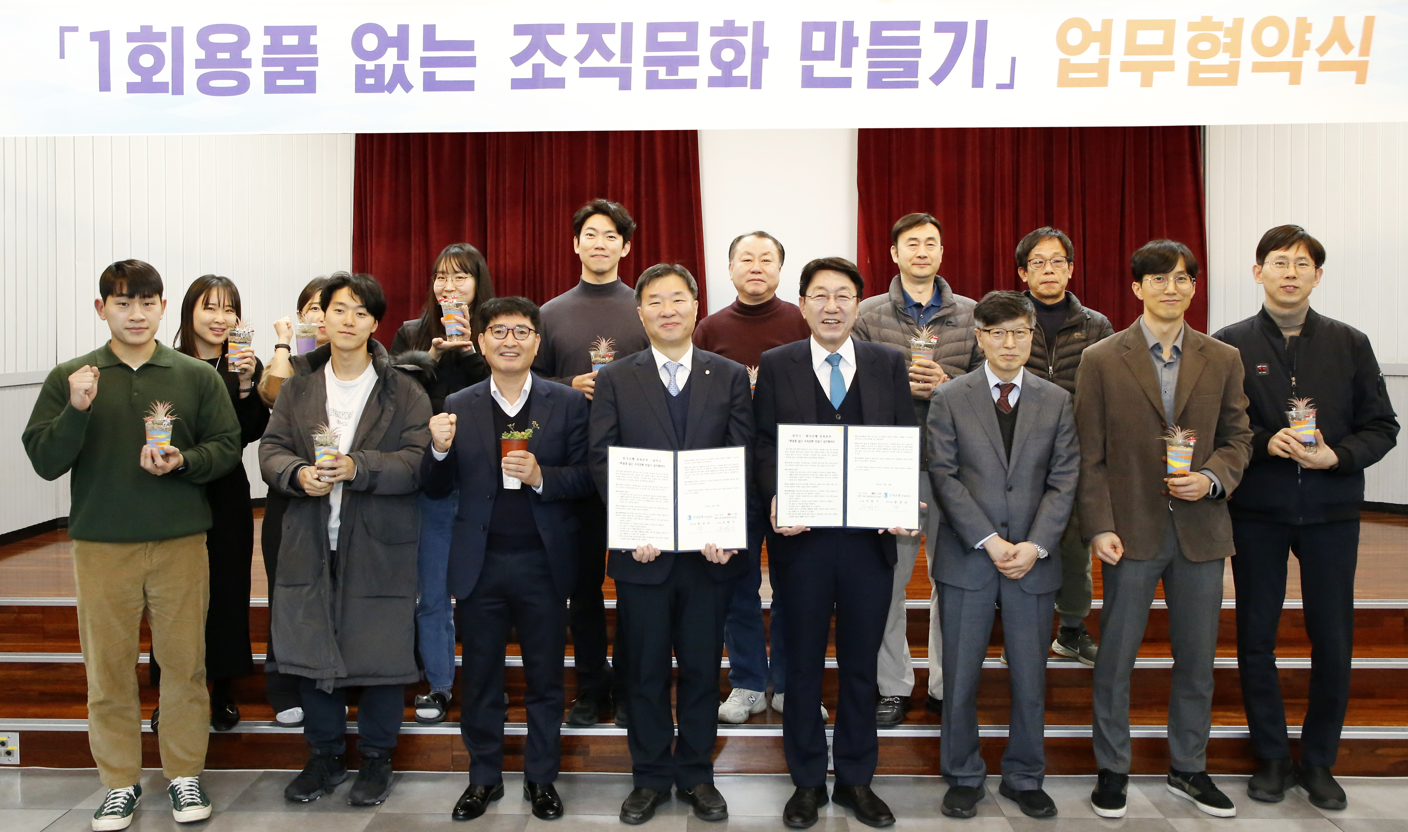 - - 시, 18일 한국은행 전북본부와 ‘1회용품 없는 조직문화 만들기’ 업무협약 체결 - 청사 내 1회용품 사용 제한 등 공공기관의 선도적 실천으로 1회용품 없는 조직문화 확산
