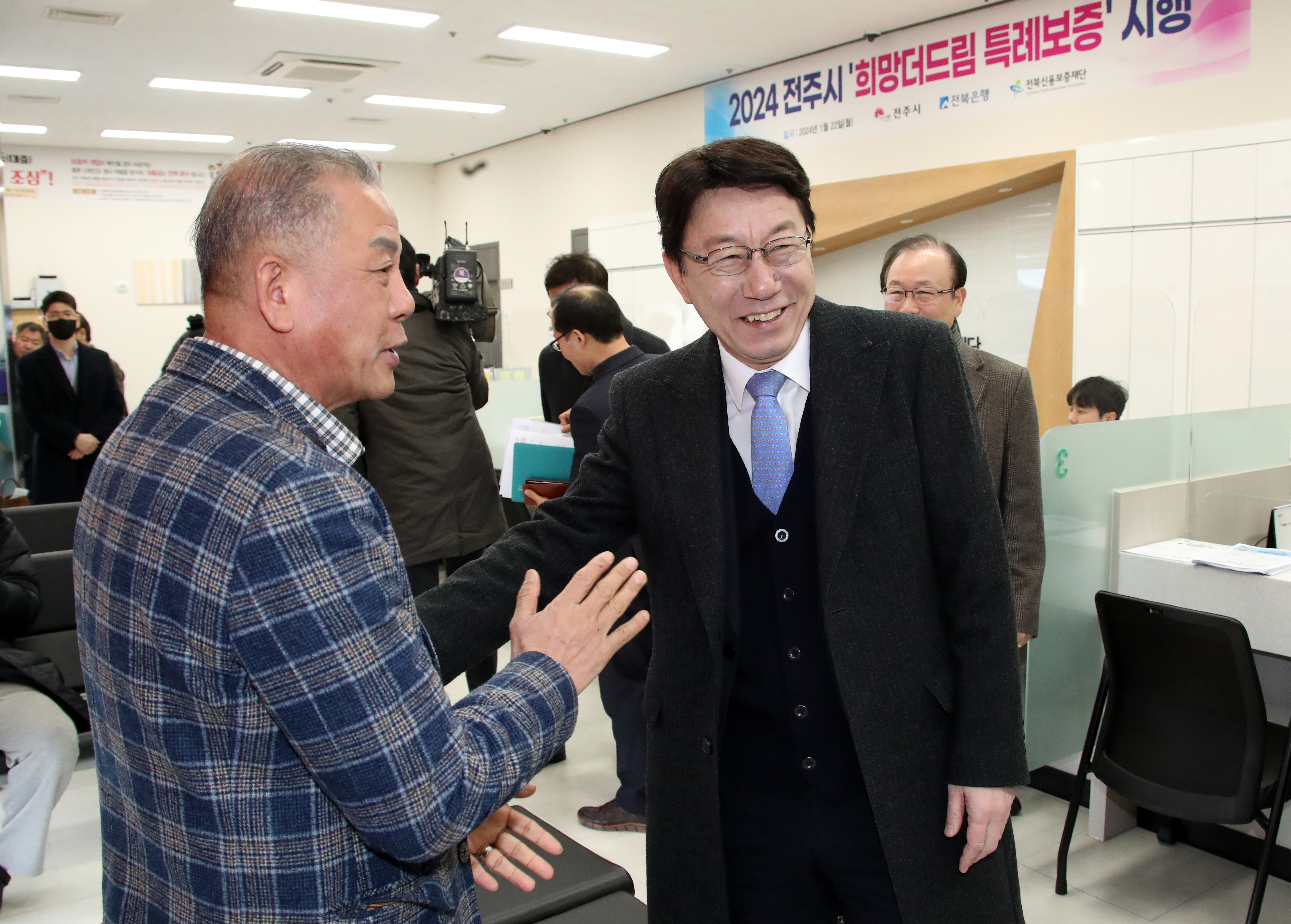 우범기 전주시장은 “지난해에 이어 올해도 전북신용보증재단의 상담 현장을 방문해 소상공인들의 금융지원에 목말랐던 심정을 그대로 느꼈다”면서 “경영 어려움을 겪고 있으나 금융지원을 받지 못한 소기업·소상공인이 이번 ‘전주 희망더드림 특례보증’ 사업을 계기로 경영 회복의 기회로 삼고, 어려움을 이겨내고 한 걸음 더 성장·발전을 이뤄내 강한 경제도시로 함께 나아가길 기대한다”고 말했다.