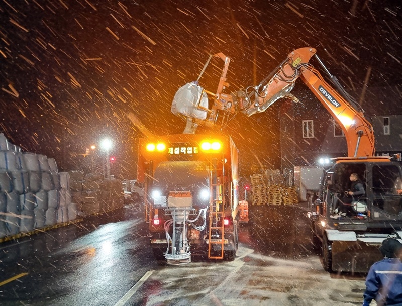 앞서 시는 지역 내 63개 노선 408km 구간의 원활한 교통이 이뤄지도록 모래살포기를 장착한 15톤 덤프 12대 등 제설장비와 염화칼슘 950톤, 소금 1860톤, 모래 5만개 등 제설자재를 사전 확보했다.
