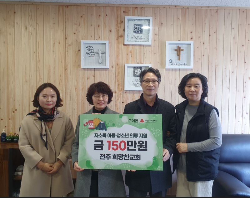 한편, 전주 희망찬교회는 이번 성금 기탁 이외에도 구이면 어르신들을 위해 300만 원 상당의 두유와 누룽지를 후원하는 등 따뜻한 나눔을 이어가고 있다.